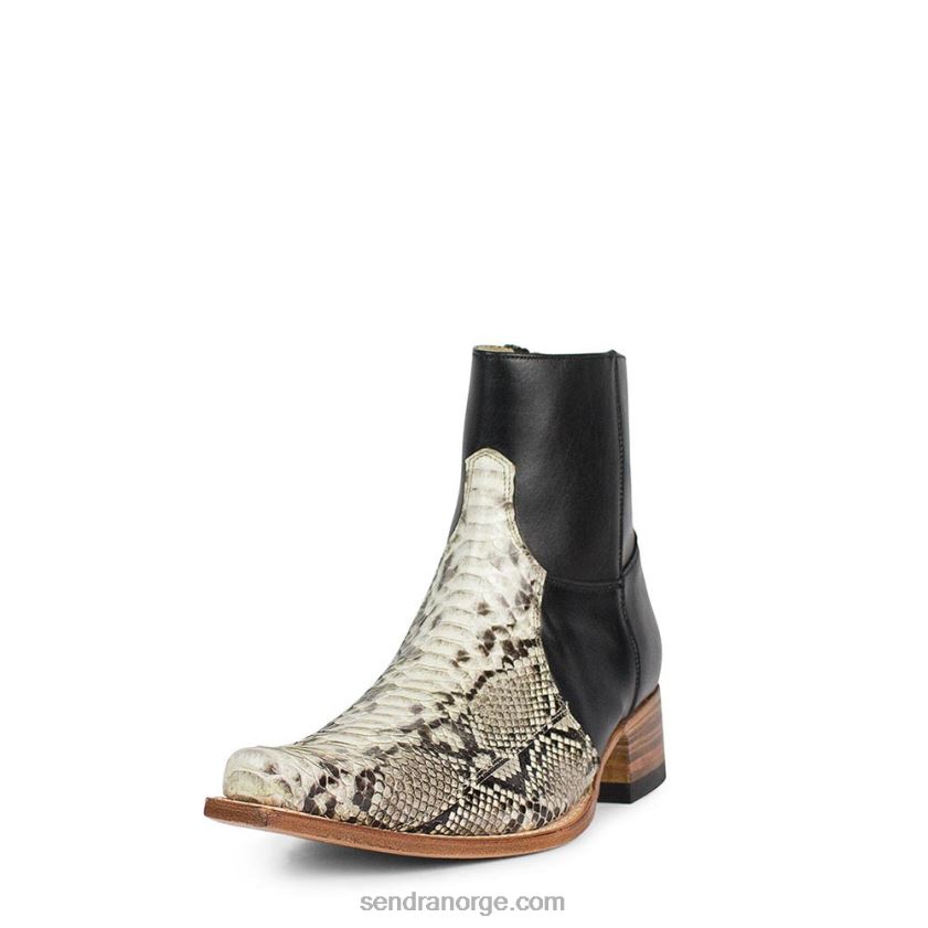 elegant sendra ankelstøvlett kombinert i okseskinn og spesialpyton, rett hæl, sideglidelås og tålest, skinnsåle og Goodyear-produksjon.