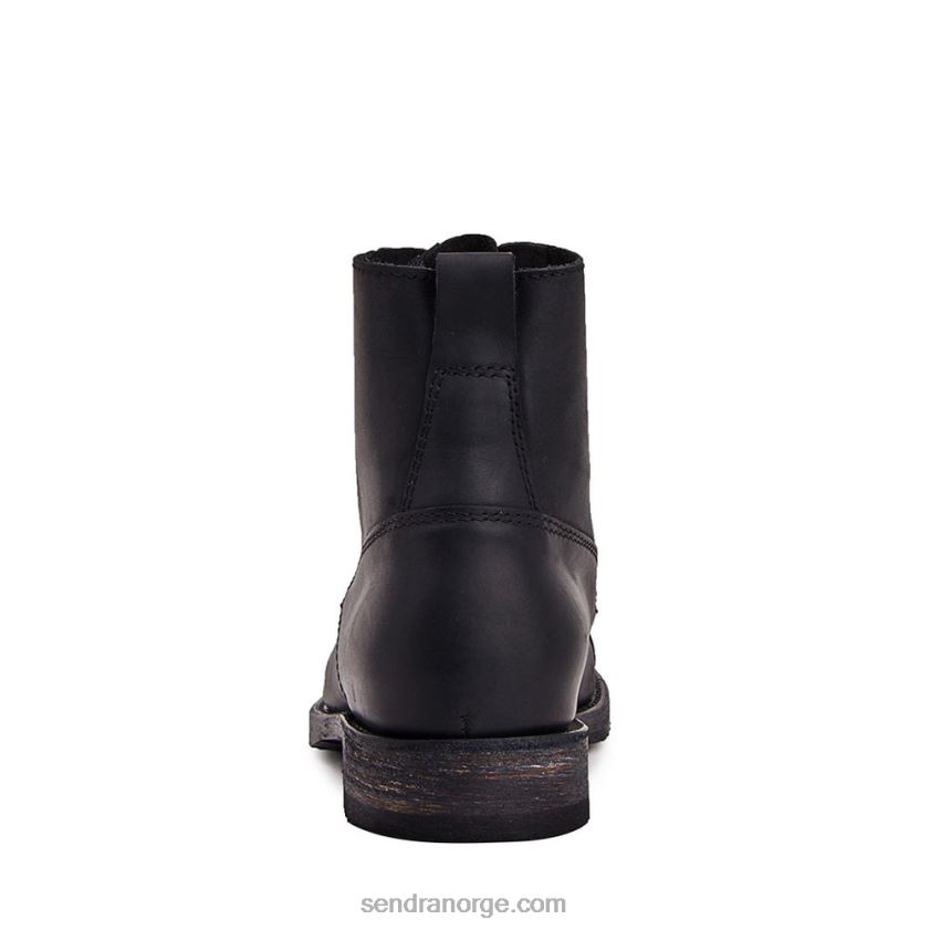 sendra ankelstøvlett med snøre for menn i svartoljet skinn, med rett hæl og rund tå, veldig behagelig, en garderobestift for samlingen din.