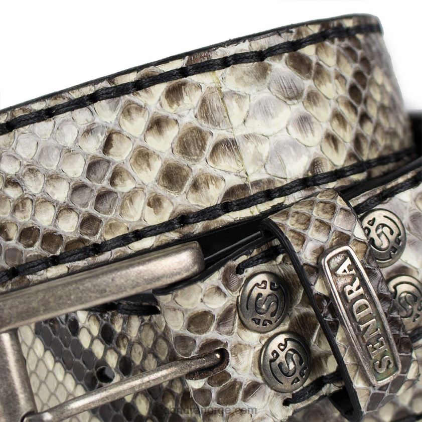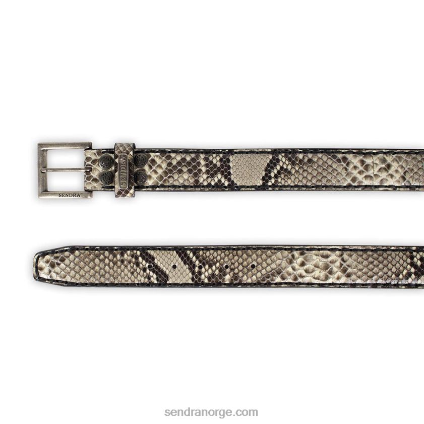 belte laget av flasset skinn i mørke toner.
