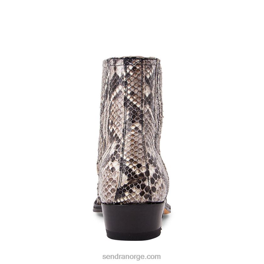 sendra ankelstøvlett i naturlig python-skinn, sideelastikk for enkel innstigning av foten, cubansk hæl og skinnsåle. ser ut som om du har på deg høye støvletter, men siden ankelstøvletter er de også ideelle for tynne eller rette bukser.