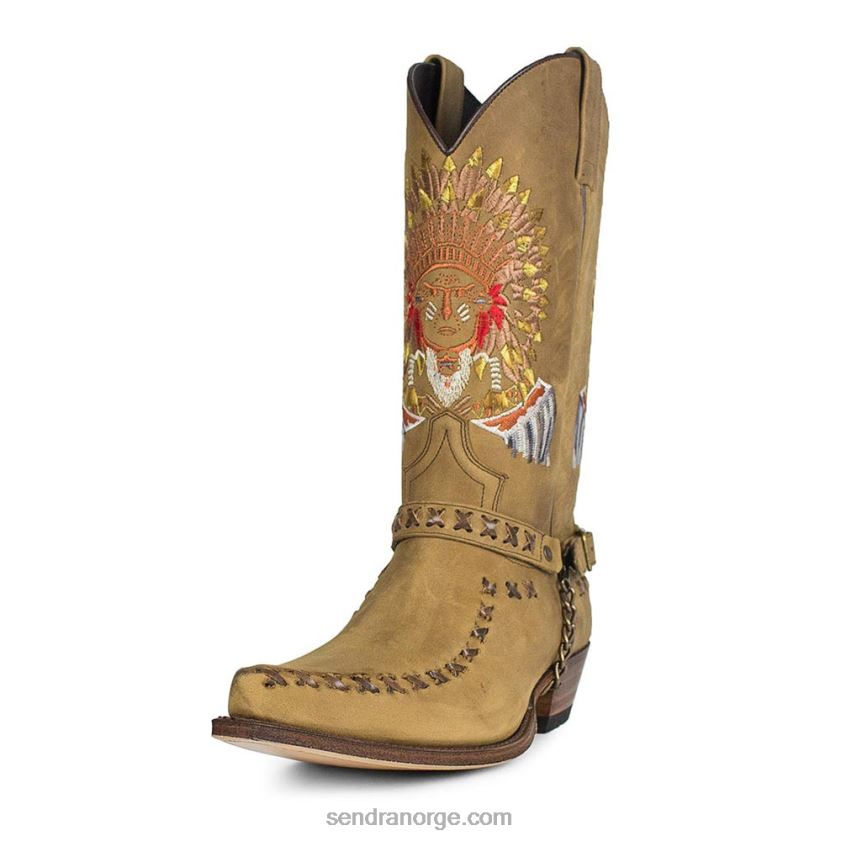 herlig kombinasjon av sendra-støvler i kuskinn og broderi på skaftet med silhuett av en indisk, kjede- og skinnsele og semi-cubansk hæl- og cowboylest, en modell fra 30 år siden som vi har reddet med moderne lær. en referanse for vårt merke.