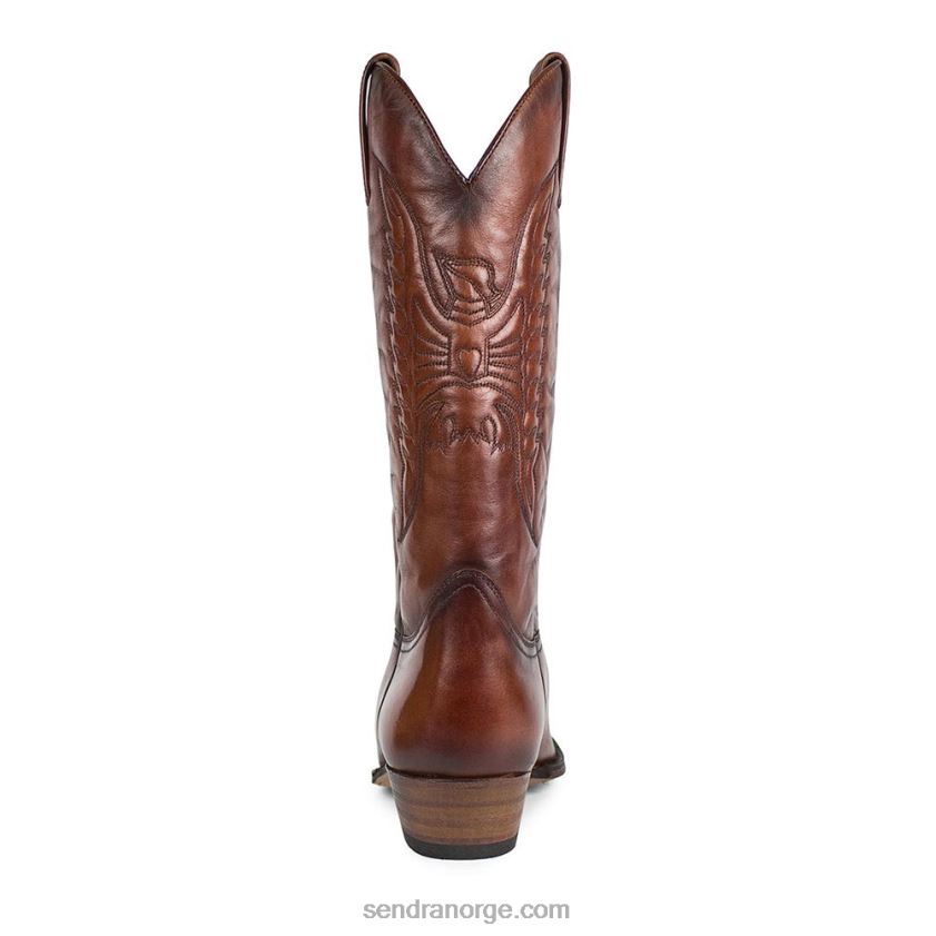 utmerket klassisk skinnstøvel med en degradert finish med broderi langs skaftet og sømmer på tåen, med hæl og semi-kubansk hæl og lærsåle.