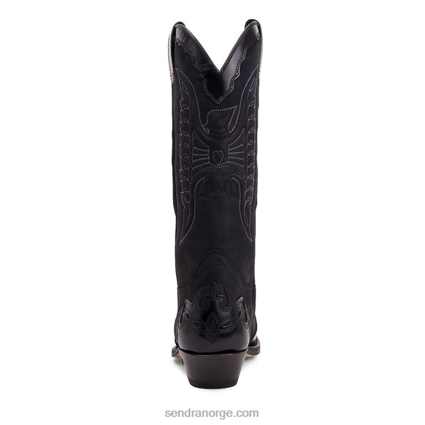 svart skinnstøvel med to typer skinn, matt og skinnende, som gir en ideell kontrast for denne støvelmodellen, med cubansk hæl og cuervo-tå, en av våre fantastiske stiler med skinnsåle og goodyear welt-konstruksjon.