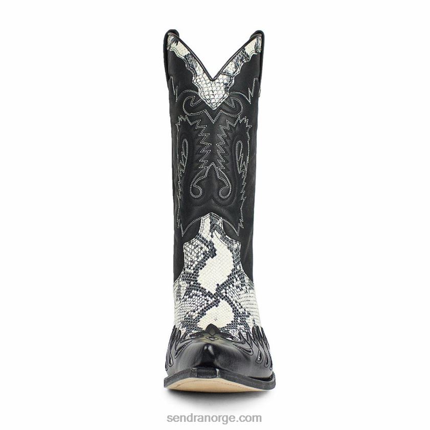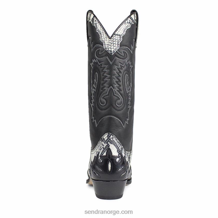 sendra boot ny kolleksjon, en referansemodell, med imitasjon av python i svart og hvitt, og et svart skinn i. sømmen og skaftet, med 3 cm hæl, cubansk tåboks og hæl, Goodyear-produksjon og sendra-garanti .