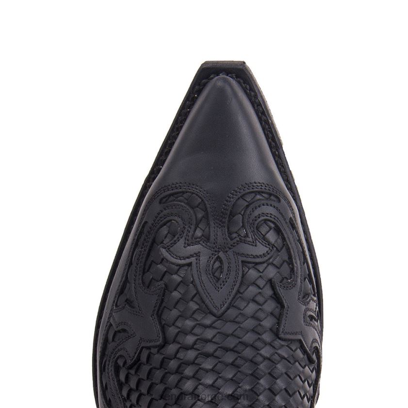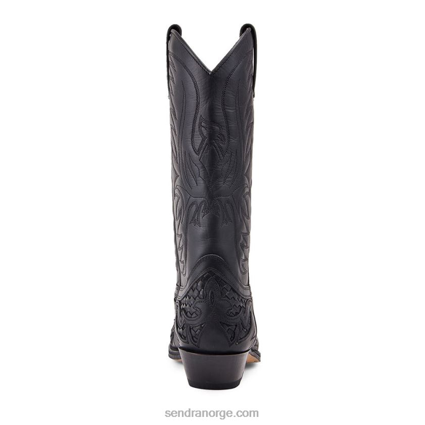 sendra boot, cowboy stil, en av våre referansemodeller, laget av oljet svart skinn, flettet på vristen, spiss lest, cubansk hæl, skinnsåle, Goodyear produksjon og vår sendestøvler garanti.