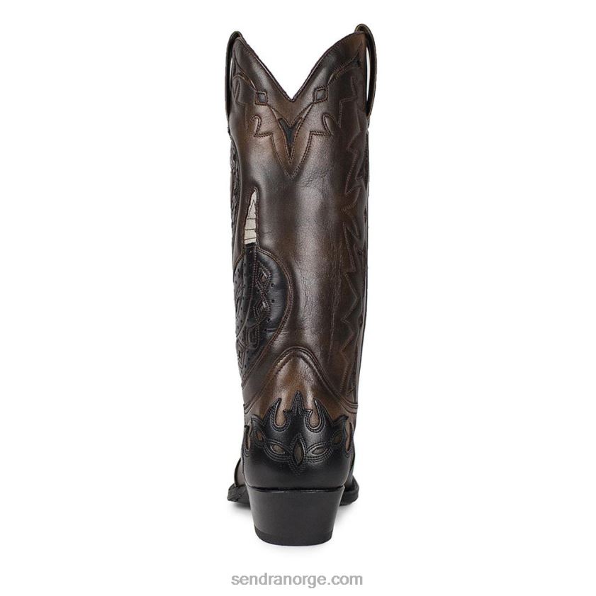 støvel med en kombinasjon av svarte og brune farger ideell med et slangebroderi på utsiden av støvelen. semi-kubansk 4,5 cm hæl for større komfort når du går uten å miste eleganse.