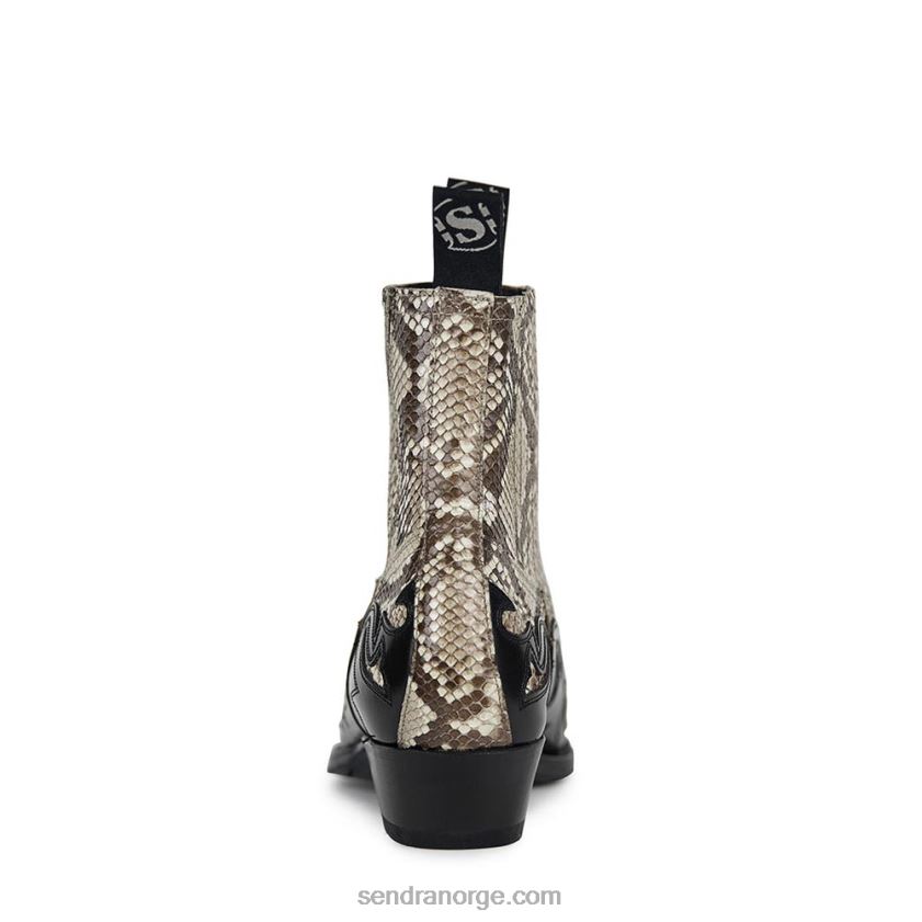 ankelstøvletter i off-white skinn med brune deler og svart broderi. semi-kubansk 4,5 cm hæl for større komfort når du går uten å miste eleganse.