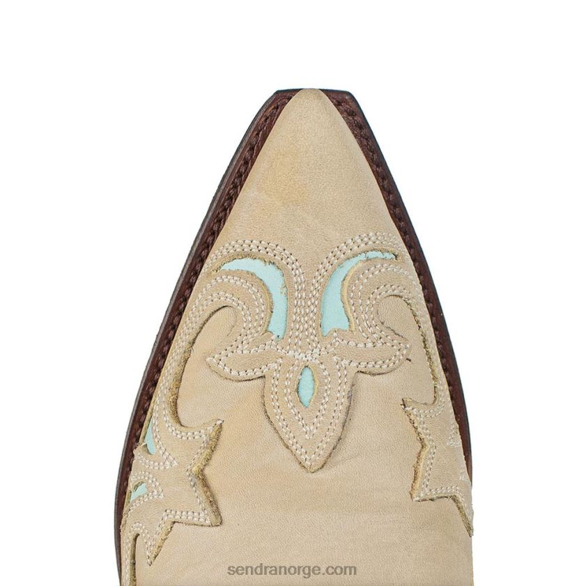 vakker cowboymodell med spiss tå og cubansk hæl 'ibiza', i en spektakulær kombinasjon av skinn i pastelltoner. spesielt original og attraktiv stokk i beige med gjennomsiktig turkis og oransje.