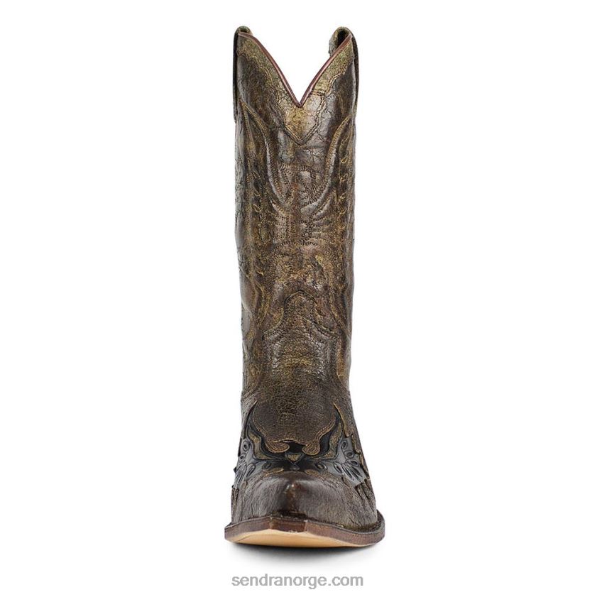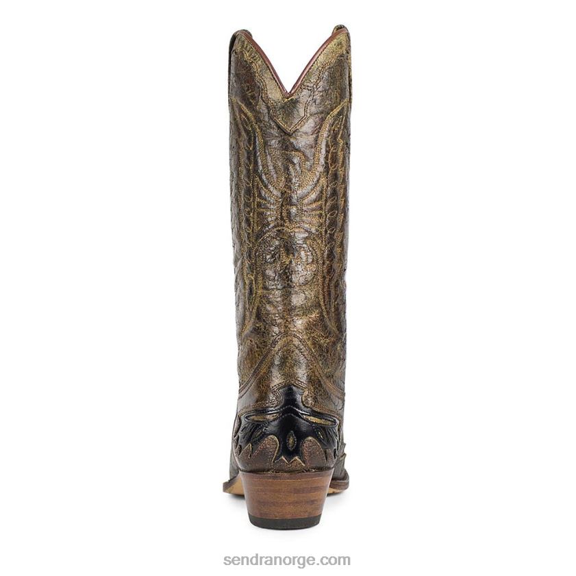 brun modell med broderi av en ørn både på skaftet og på tåen. semi-kubansk 4,5 cm hæl for større komfort når du går uten å miste eleganse.