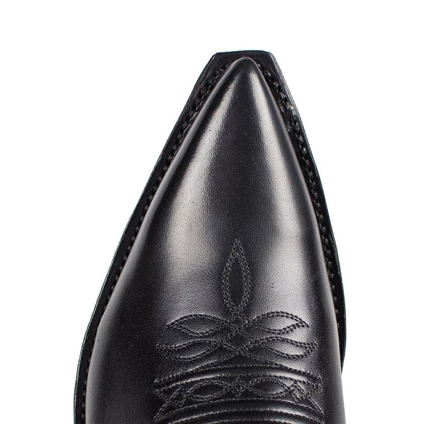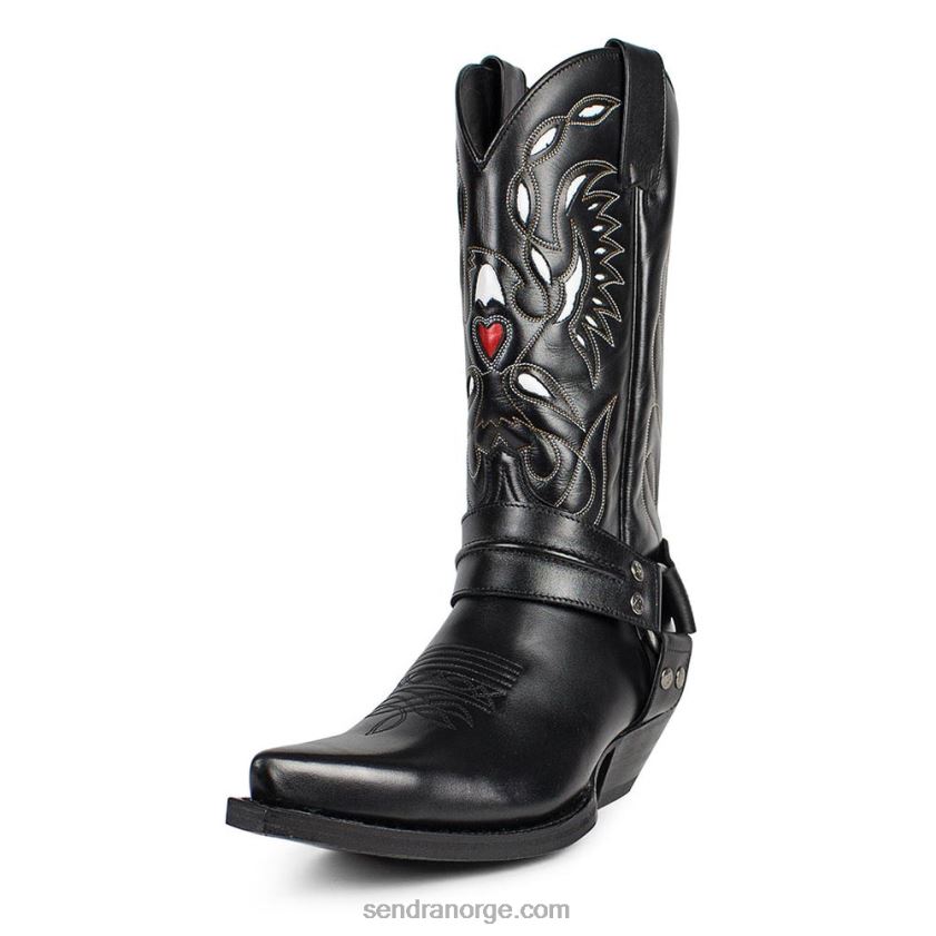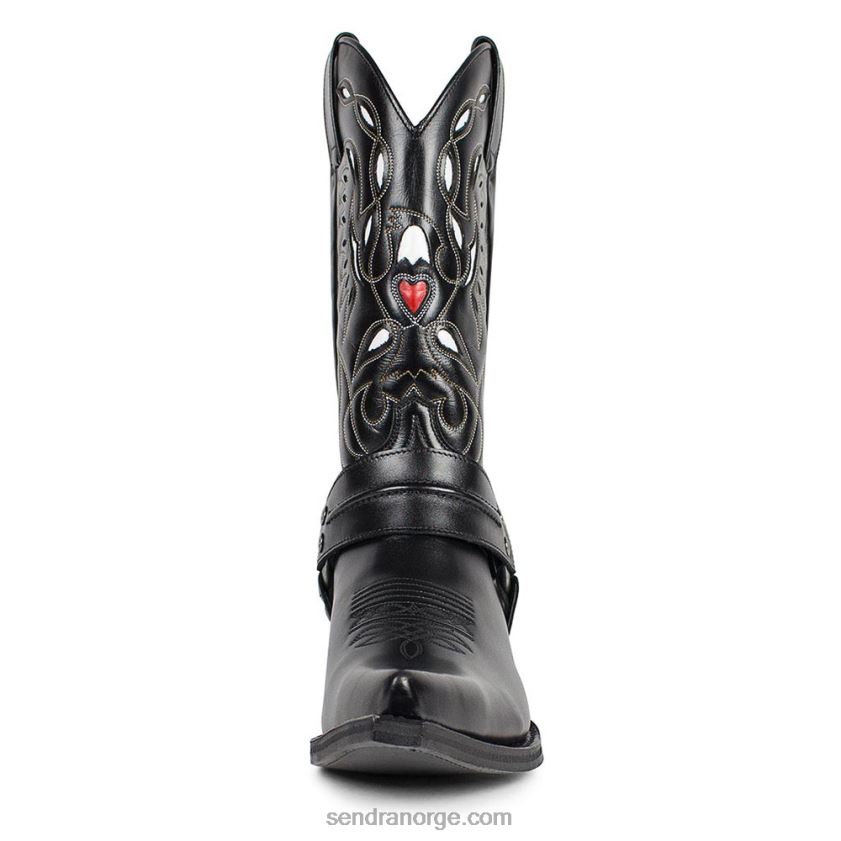 svart støvel med sømmer på tåen og broderi i form av en ørn og et rødt hjerte i midten av skaftet. 4,5 cm kubehæl for større komfort når du går uten å miste eleganse.