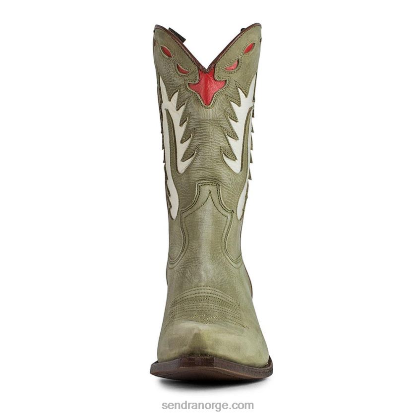 sendra damestøvel, laget av brunt og turkis skinn, med nesten rett hæl og rund form, en spektakulær modell, som kombinerer nye trender med cowboyessensen vår, veldig behagelig og smal i skaftet.