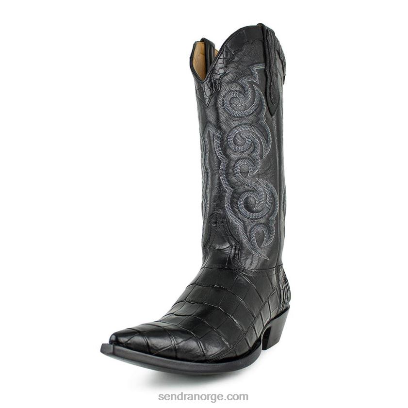 Sendra-støvler i begrenset opplag, laget av krokodillemage og skinn, håndlaget broderi på stokken, spiss lest og cubansk hæl, såle med treknagger plassert for hånd én etter én, håndlaget Goodyear-produksjon og vår sendestøvlergaranti. en ren håndlaget støvel for en cowboysamler.