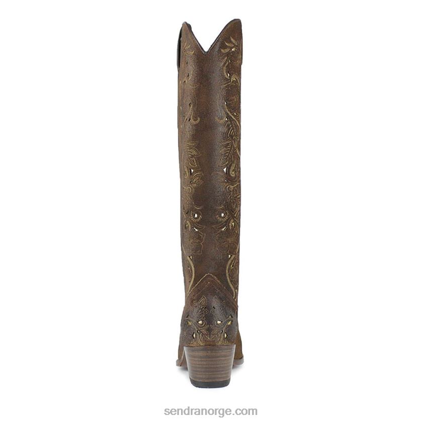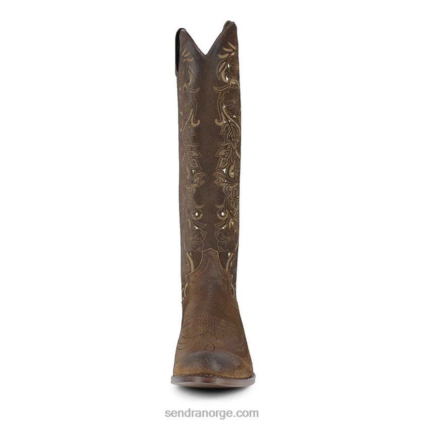 beige brun støvel med broderi i form av to indianerhoder som vender mot hverandre. sendra logo på hælen og original sendrasøm på tåen. semi-kubansk 4,5 cm hæl.