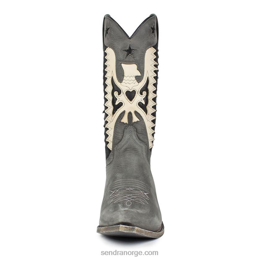 sendra-støvler med avrundet tålest og middels høy hæl. kombinert i svart og hvitt med fargede detaljer på skaftet. produsert med Goodyear-søm og de beste skinnene og materialene på markedet slik at du kan få et spektakulært utseende denne nye sesongen.