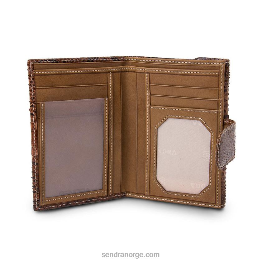 sendra lommebok i pythonskinn for kvinner. innvendig med ulike spor for kort og sedler, og utvendig veskelomme med kile med sendra-garanti