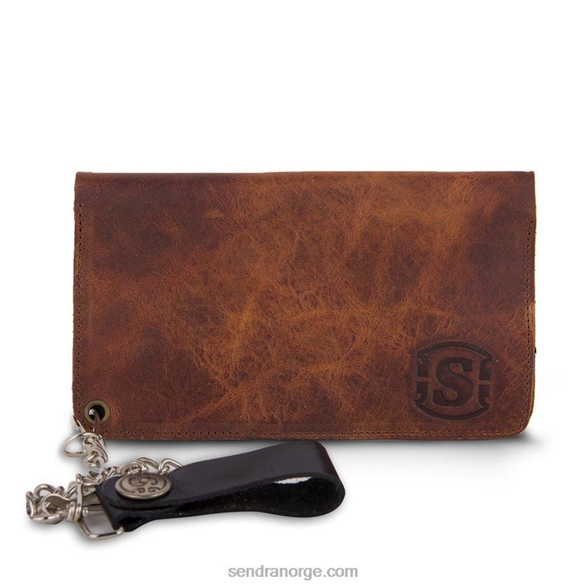 brun lommebok med sendra-logoen foran og hodet til en indianer.