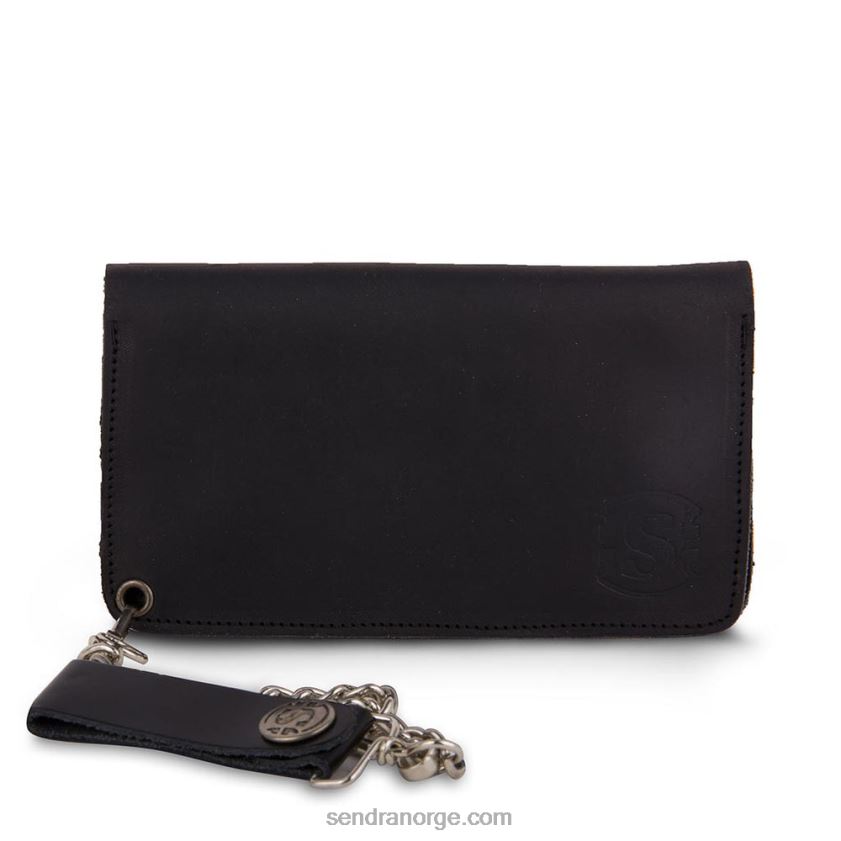 sendra-skinnlommebok, med broderi, biker-stil med kjede og karabinlås for større sikkerhet, 2 rom for sedler og dokumenter og 1 lomme med glidelås for mynter med vår sendra-garanti.