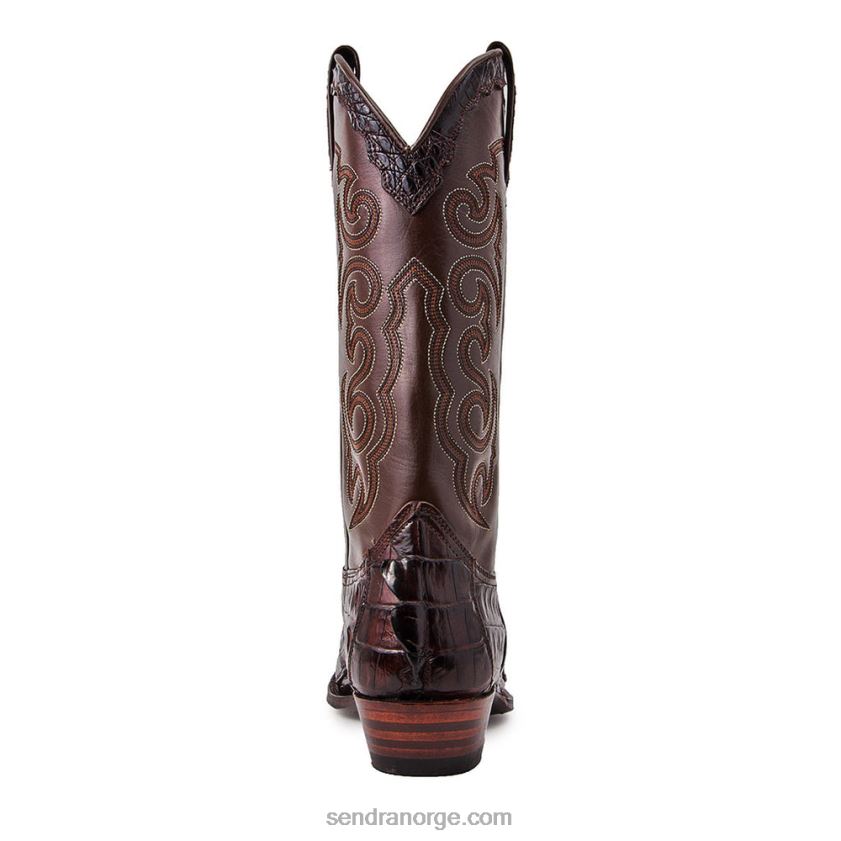 sendra kuskinn og alligator haleskinnstøvel i brunt, noe unikt i samlingen vår, for samlere og elskere av cowboyverdenen. cubansk hæl og spiss tå, og selvfølgelig goodyear welt-konstruksjon.