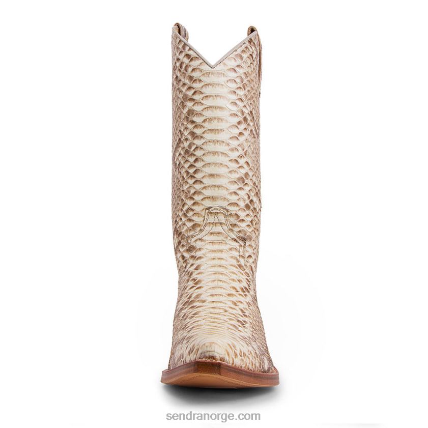 en av våre stjernestøvler, helt naturlig pytonskinn, halv cubansk hæl og, som alle sendra-støvler, skinnsåle og goodyear welt-konstruksjon. denne samlermodellen er et must-have i garderoben din, med sin suverent komfortable passform og svært myke skinn som raskt gir, tilpasser seg perfekt til foten din fra dag én.