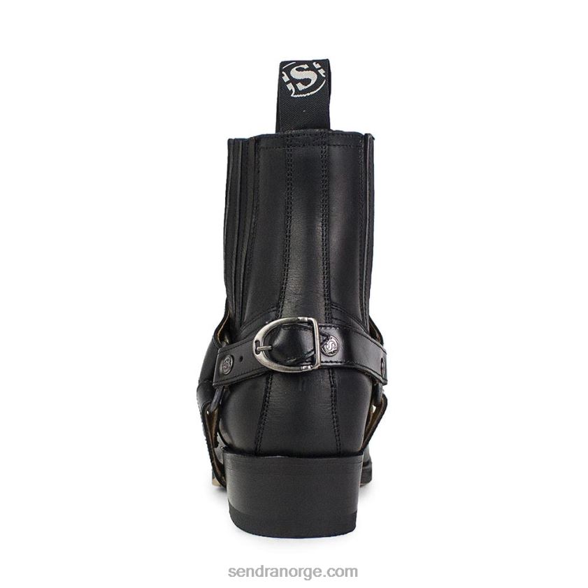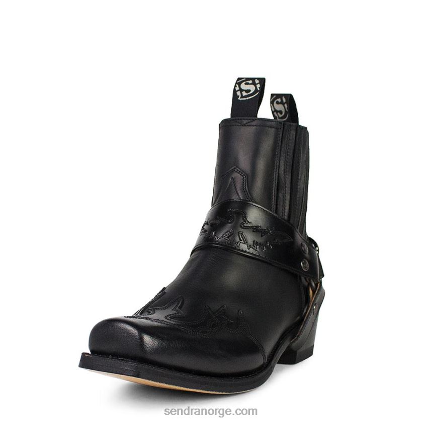 unisex ankelstøvlett med vanlig syklist i behagelig svart skinn med brodert spiss design. skinnsåle og hæl og en dekorativ skinnsele.