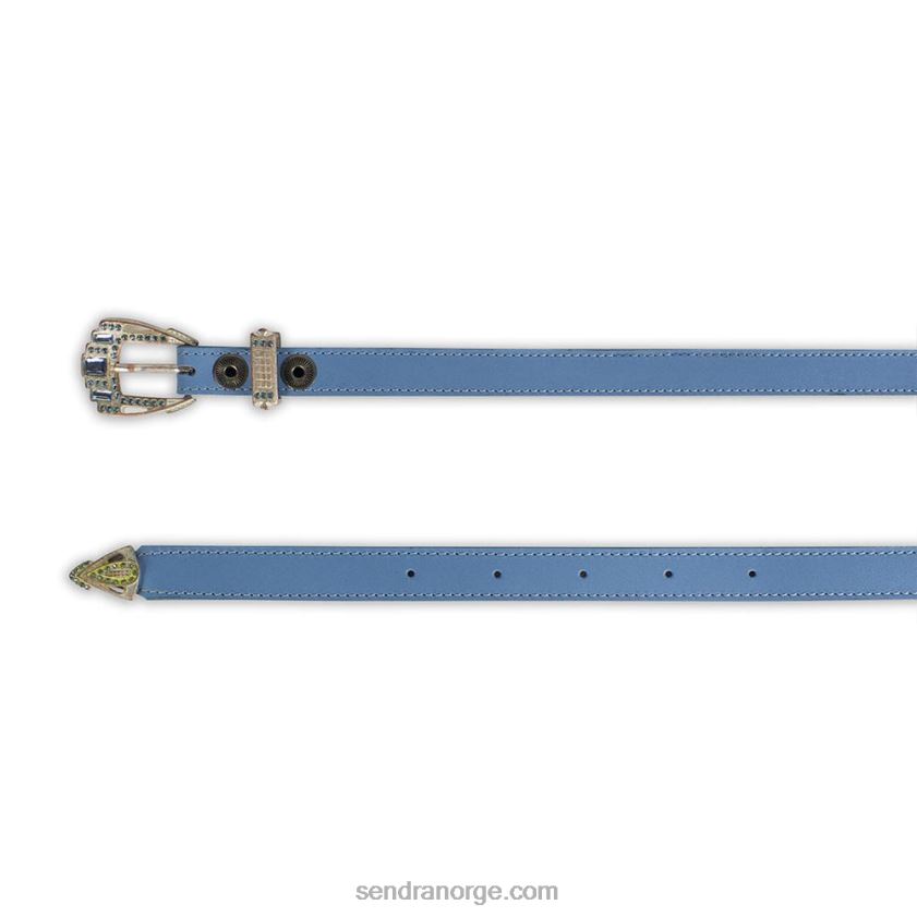 lyseblått skinnbelte med rhinestones på spennen, tynn tykkelse.