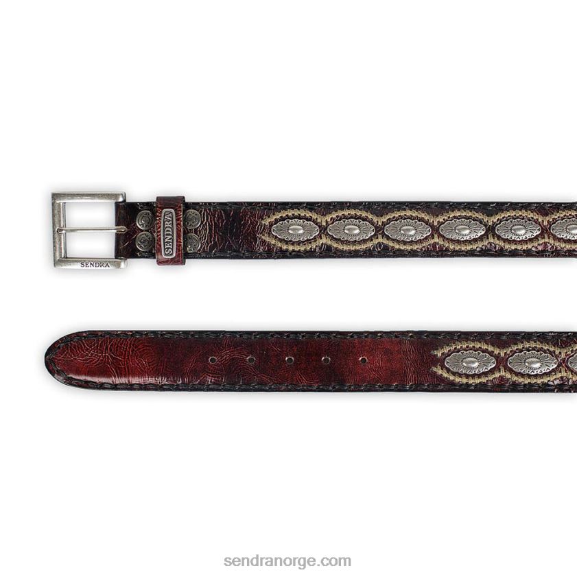 utmerket rødt belte med sølvnagler i hele beltet. sølvspenne med sendra-logoen.v